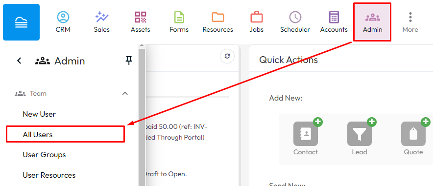 Note: If you cannot see the Admin button in your menu, then you can select the More option, and it will be listed there.