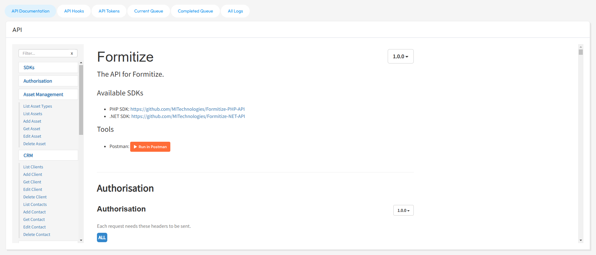 In this section of your account, you will be able to find all the information you need to know about Formitize's API.