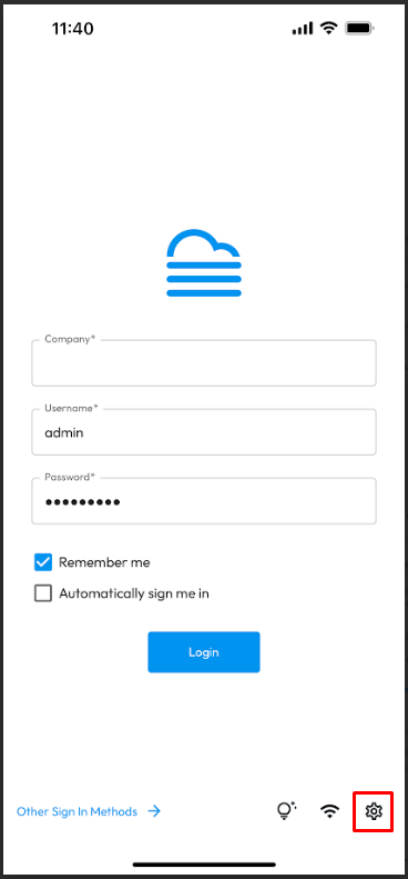 On the App before logging in there is a settings cog in the lower right corner which brings up settings options..