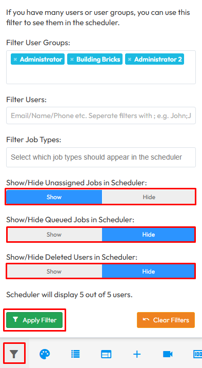 You are able to hide the Unassigned Jobs, Queued Jobs and Deleted User information in the scheduler.