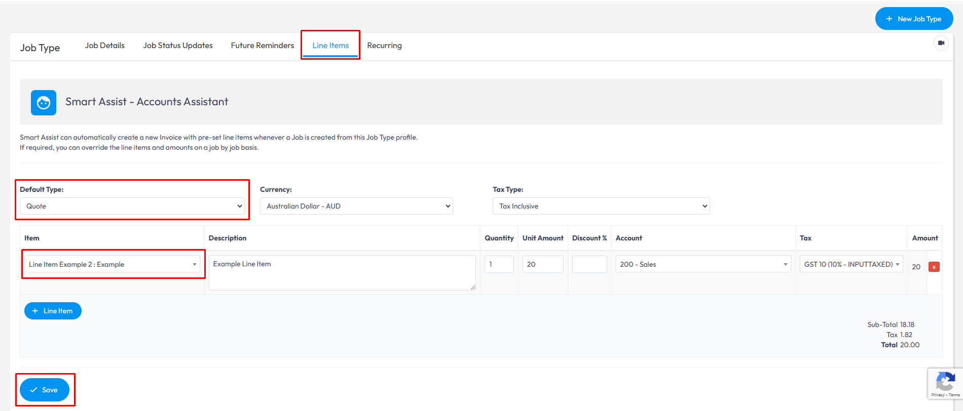 When you create a job with this job type template, it will now have a quote attached to it (which you can still edit before sending it to the client).