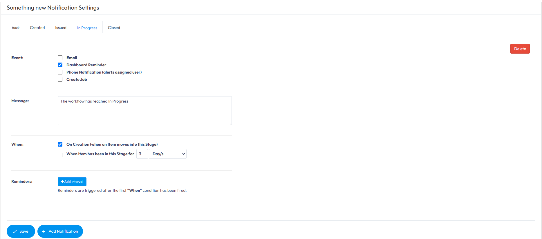 You can add another notification to the Workflow stage by selecting + Add Notification beside the Save button.